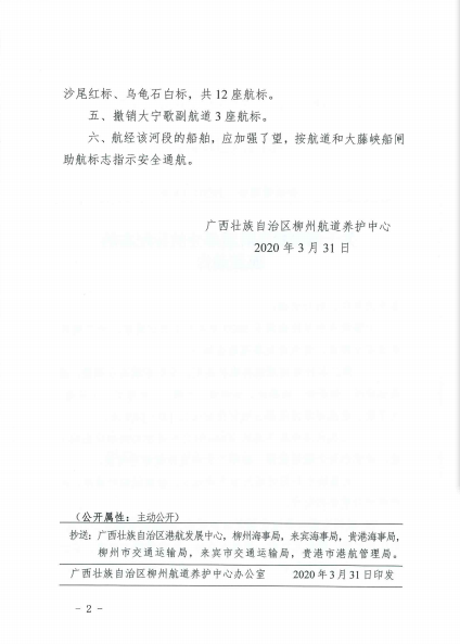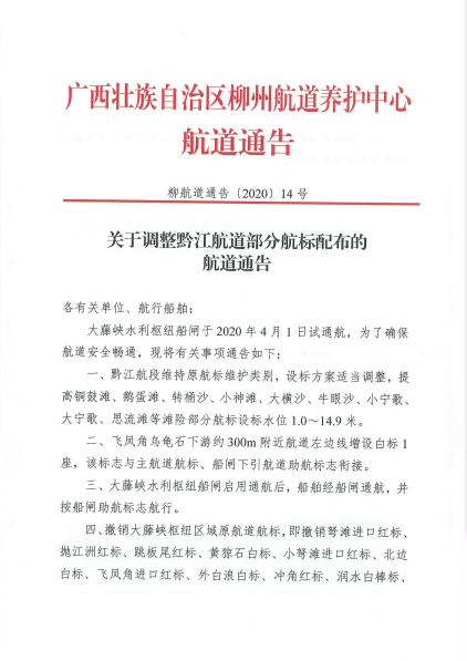 关于调整黔江航道部分航标配布的航道通告