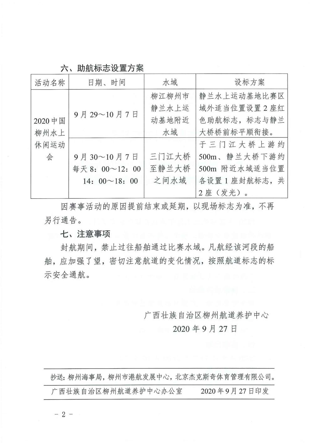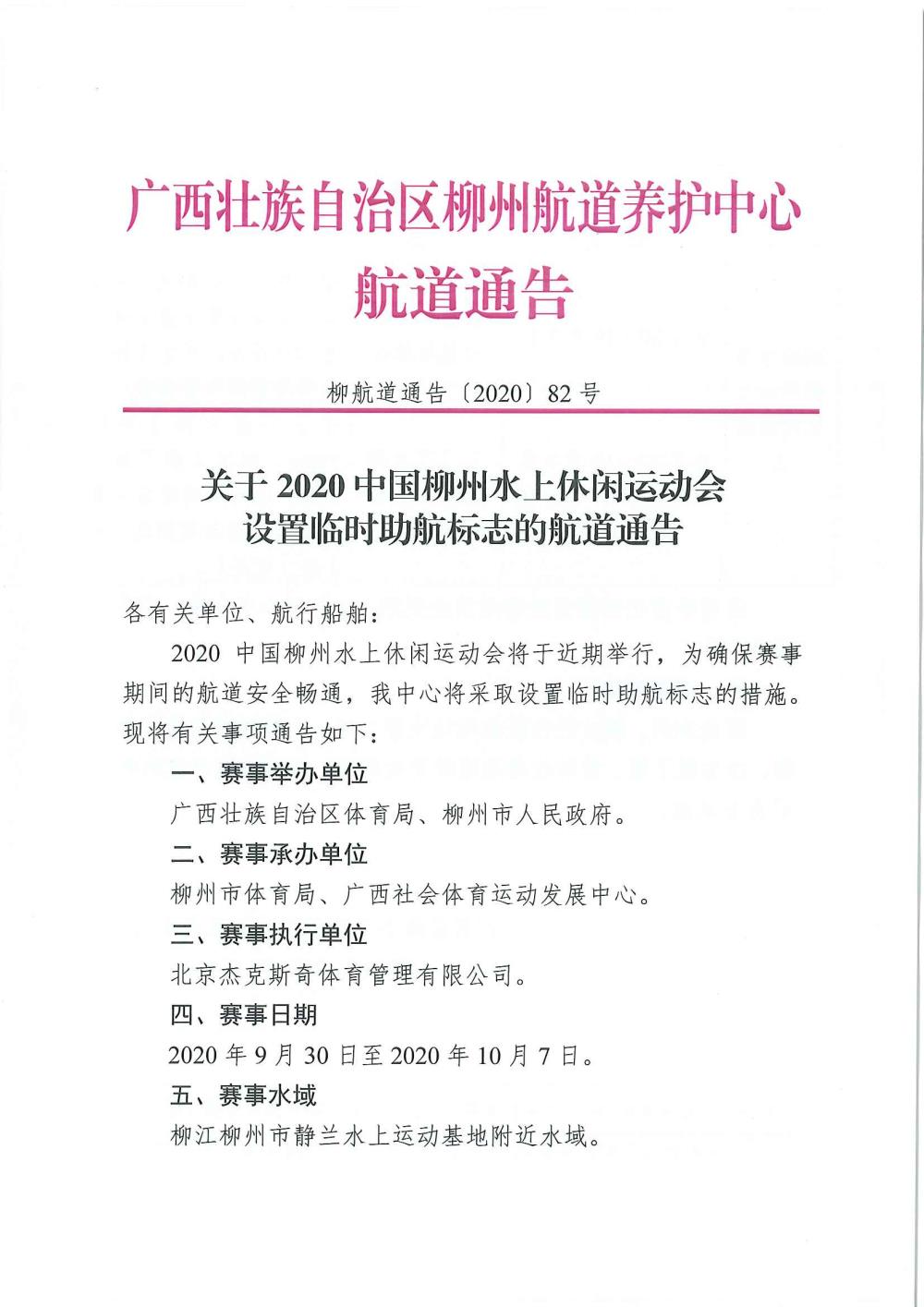 关于2020中国柳州水上休闲运动会设置临时助航标志的航道通告