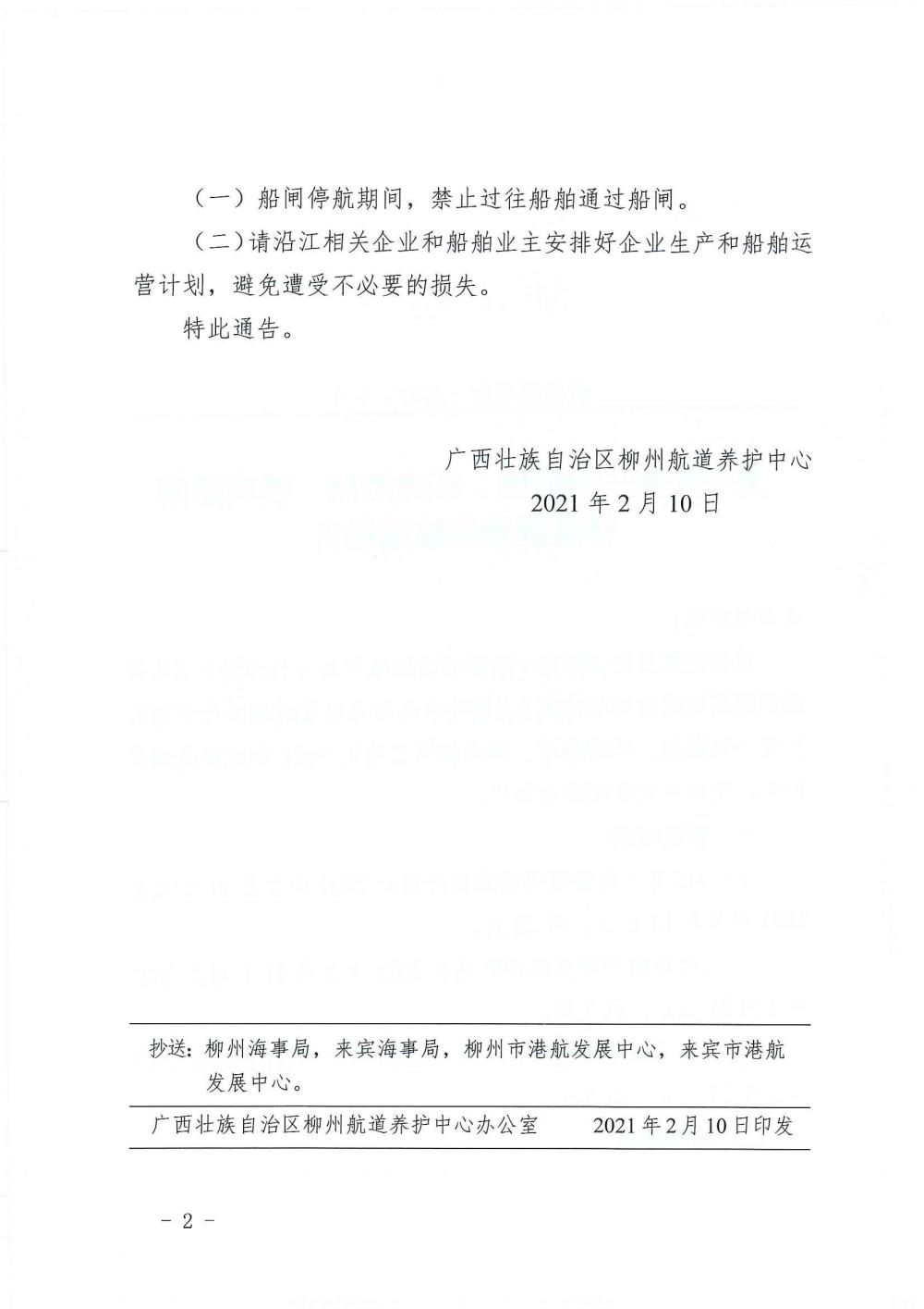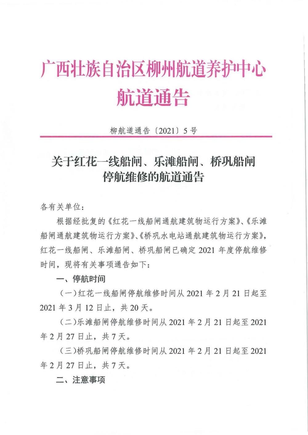 关于红花一线船闸、乐滩船闸、桥巩船闸停航维修的航道通告
