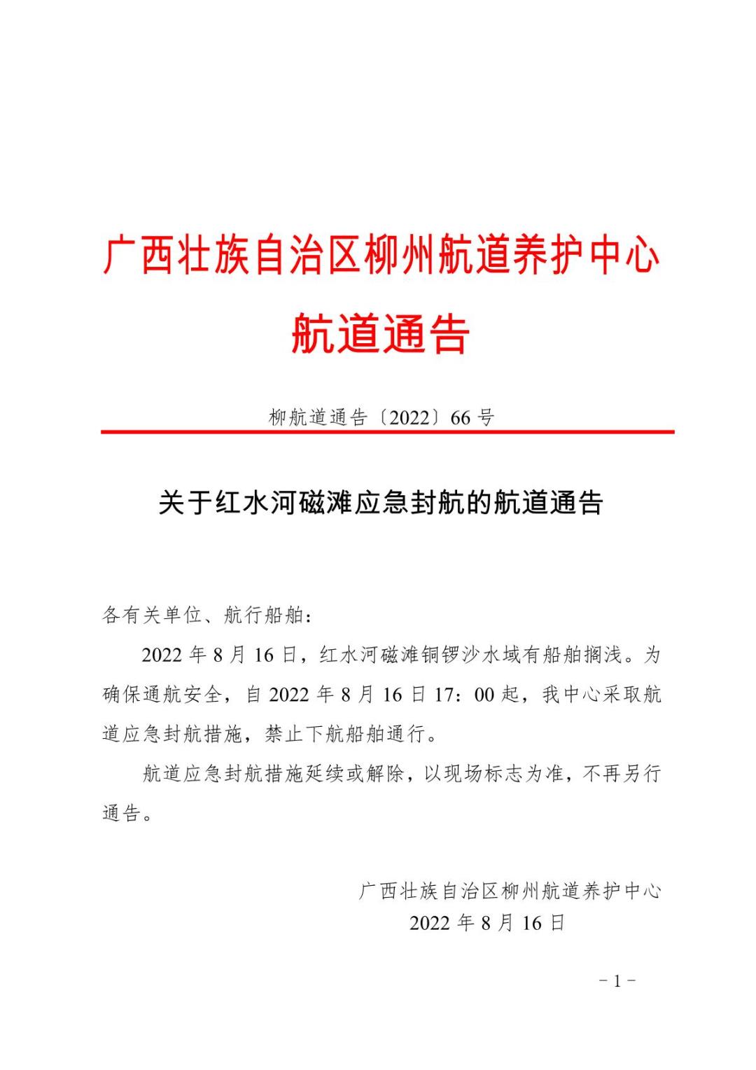 关于红水河磁滩应急封航的航道通告