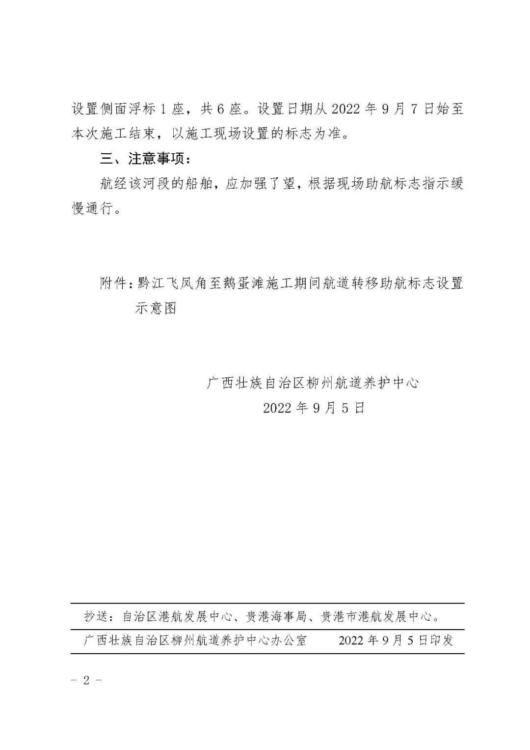 关于临时调整桂平飞凤角至鹅蛋滩临时航道的航道通告