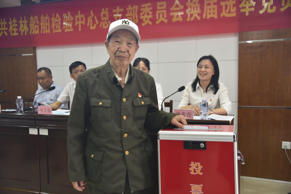 6月8日上午,桂林船舶检验中心组织召开党员大会选举新一届党总支委员会?;嵋橛筛弥行母笔榧翘扑厍嘀鞒?,自治区港航发展中心党委副书记、纪委书记韦立强,党委办公室(监察室)副主任李建慧莅临指导工作。 桂林船检党总支书记韦旭滔作了《贯彻新发展理念